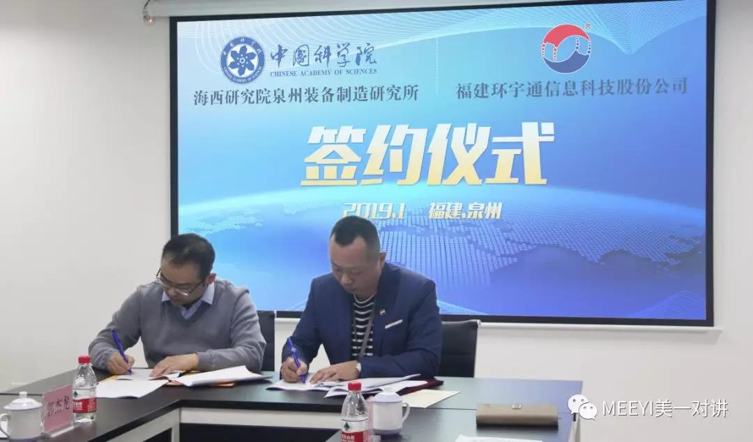 1月16日,環宇通公司與中國科學院海西研究院泉州裝備制造研究所簽署了項目合作協議。環宇通公司謝建華董事長、魏雄凌總經理、黃煒華副總經理和中國科學院海西研究院泉州裝備制造研究所的劉海舟所長、胡明強博士、魏憲博士等人共同出席了本次簽約儀式。