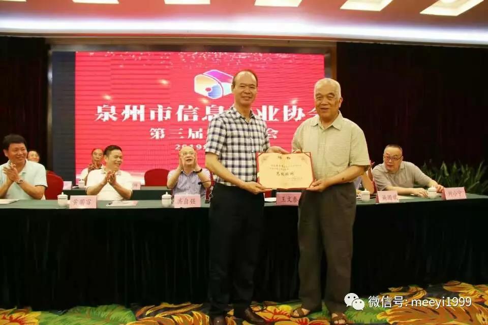泉州市政府有關(guān)部門(mén)領(lǐng)導(dǎo)為協(xié)會(huì)領(lǐng)導(dǎo)頒發(fā)牌匾,福建環(huán)宇通信息科技股份公司當(dāng)選為泉州市信息產(chǎn)業(yè)協(xié)會(huì)常務(wù)副會(huì)長(zhǎng)單位。