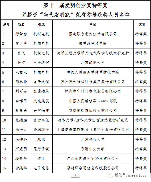 在泉州分會場,福建環宇通信息科技股份公司謝建華獲得發明創業獎特別獎·當代發明家;石獅市星火鋁制品有限公司陳興星、福建 科立訊通信有限公司付文良、泉州勁鑫電子有限公司陳文明、福建省 德化縣華達陶瓷有限公司李甲棧、福建泉城特種裝備科技有限公司李斌陽、泉州市鐵通電子設備有限公司洪清喜、福建佳友茶葉機械智能 科技股份有限公司陳加友等獲得發明創業獎·人物獎。本次評選出第十一屆發明創業獎·人物獎有 100 位獲獎者,其中 15位特等獎被授予“當代發明家”榮譽稱號,以表彰他們的發明創新成果為行業發展做出突出貢獻。