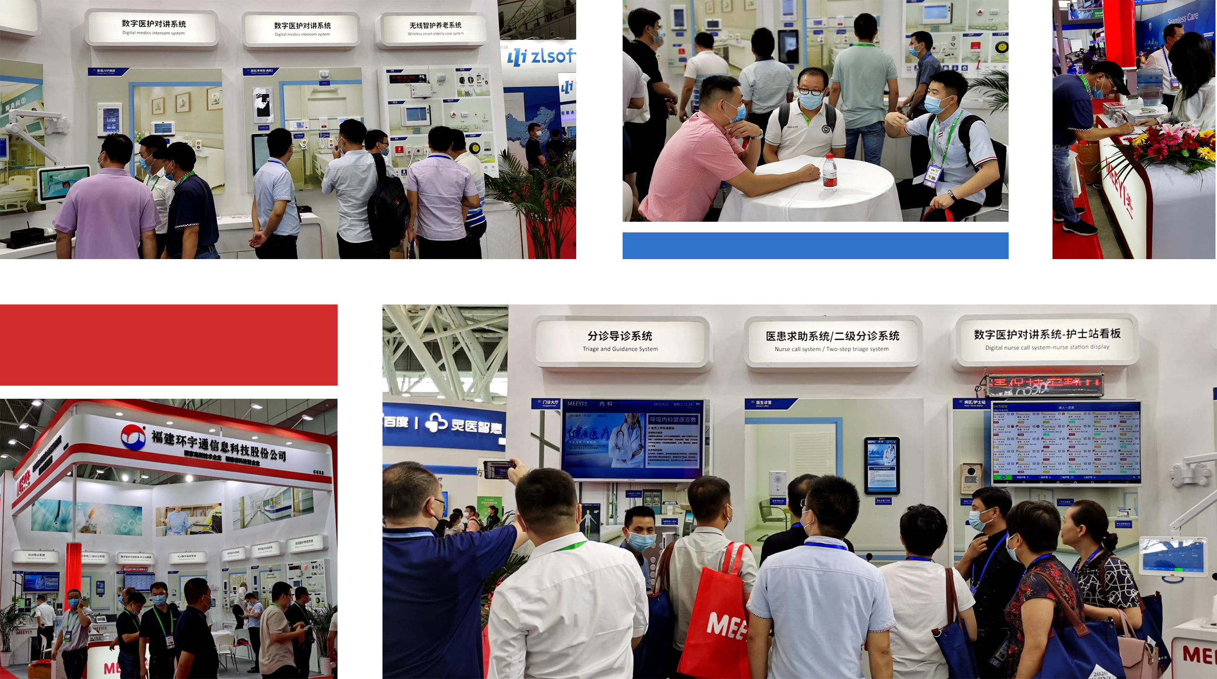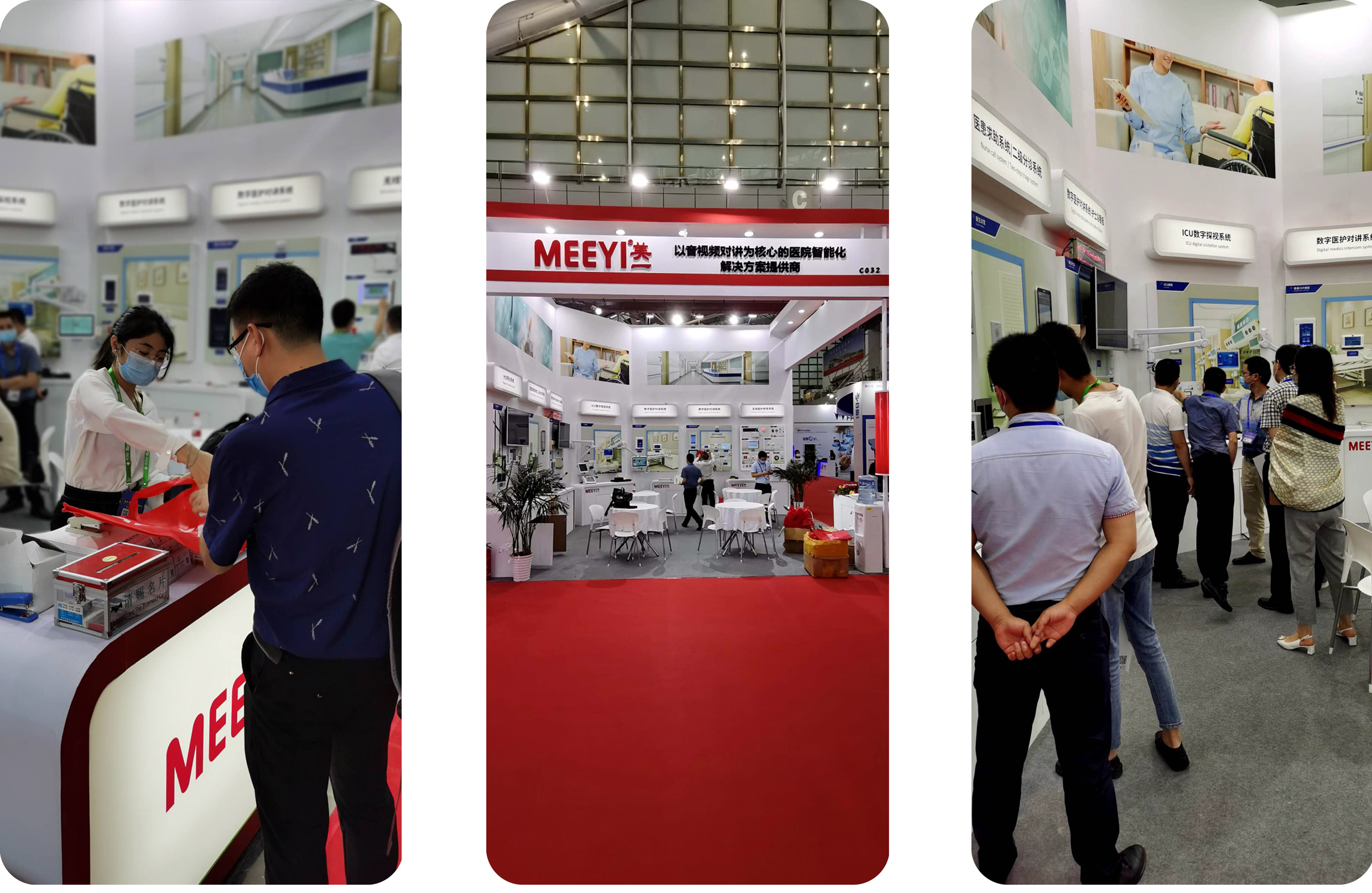 本次展會上環宇通攜旗下品牌MEEYI美一亮相C032展位,展示了醫患求助、數字醫護對講、ICU數字探視、無線智護養老、分診導診、信息發布等系統,為醫院智能化建設提供整體解決方案。