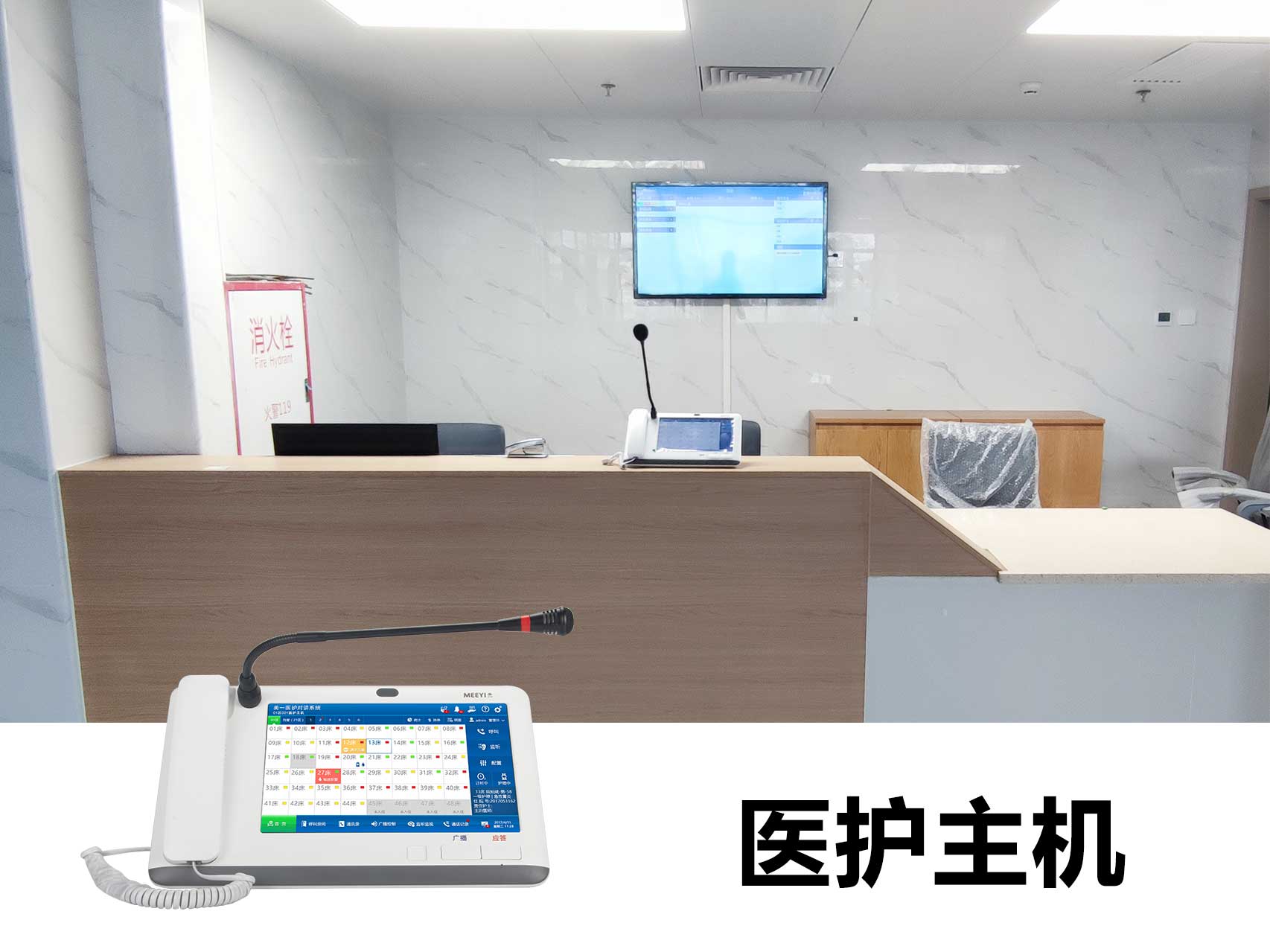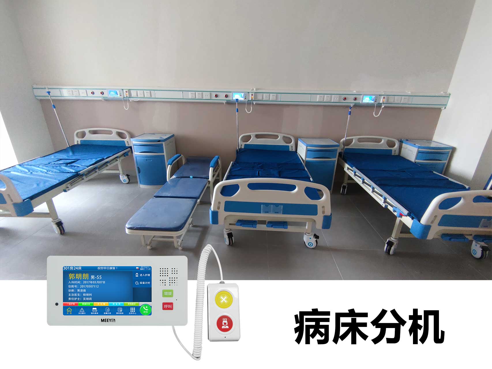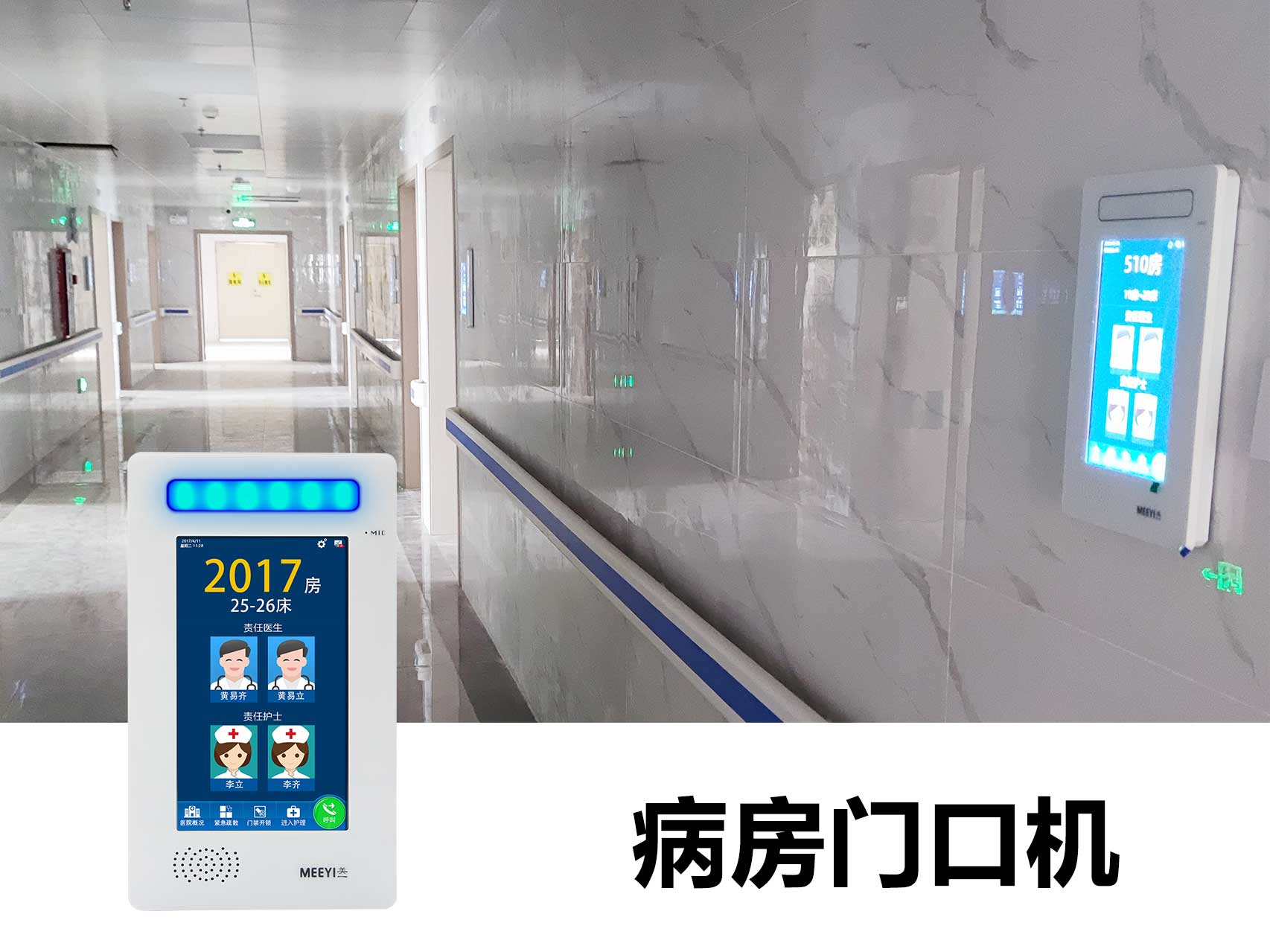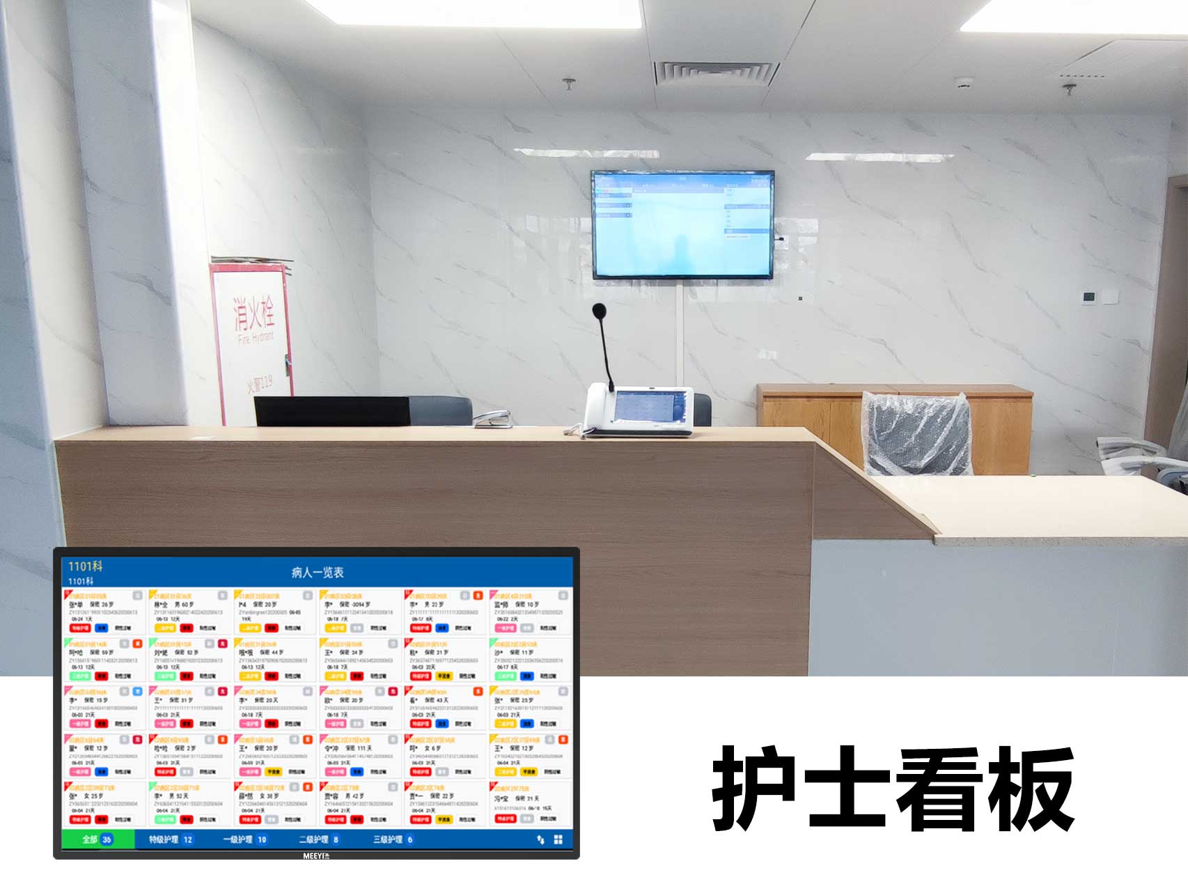 此次羅定市第五人民醫院智能化改造采用了我司自主研發的“MEEYI美一”智慧醫養綜合解決方案。通過該方案可以實現:
