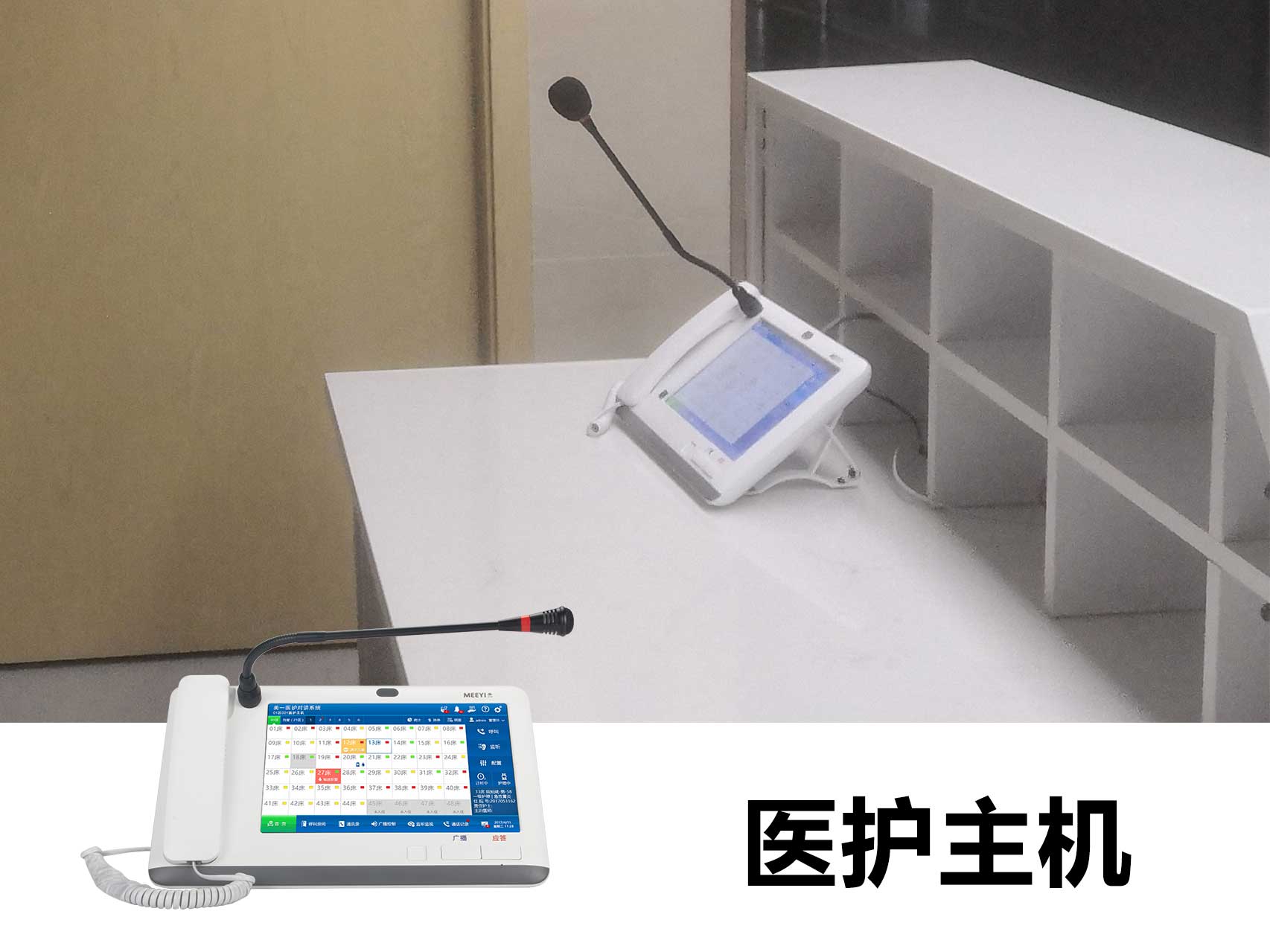 我司自主研發的“美一”智慧醫養智能化系統,包括信息發布、取藥叫號、分診排隊、醫護對講、ICU探視、醫患求助、無線呼叫等(點擊查看完整解決方案),為醫院、養老院、福利院等提供智能化整體解決方案。系統基于我司自主研發的沃爾卡智慧物聯網平臺,支持多類型設備接入,兼容現有各類傳輸網絡,能夠與醫院的HIS系統無縫銜接,數字傳輸、方便快捷。
