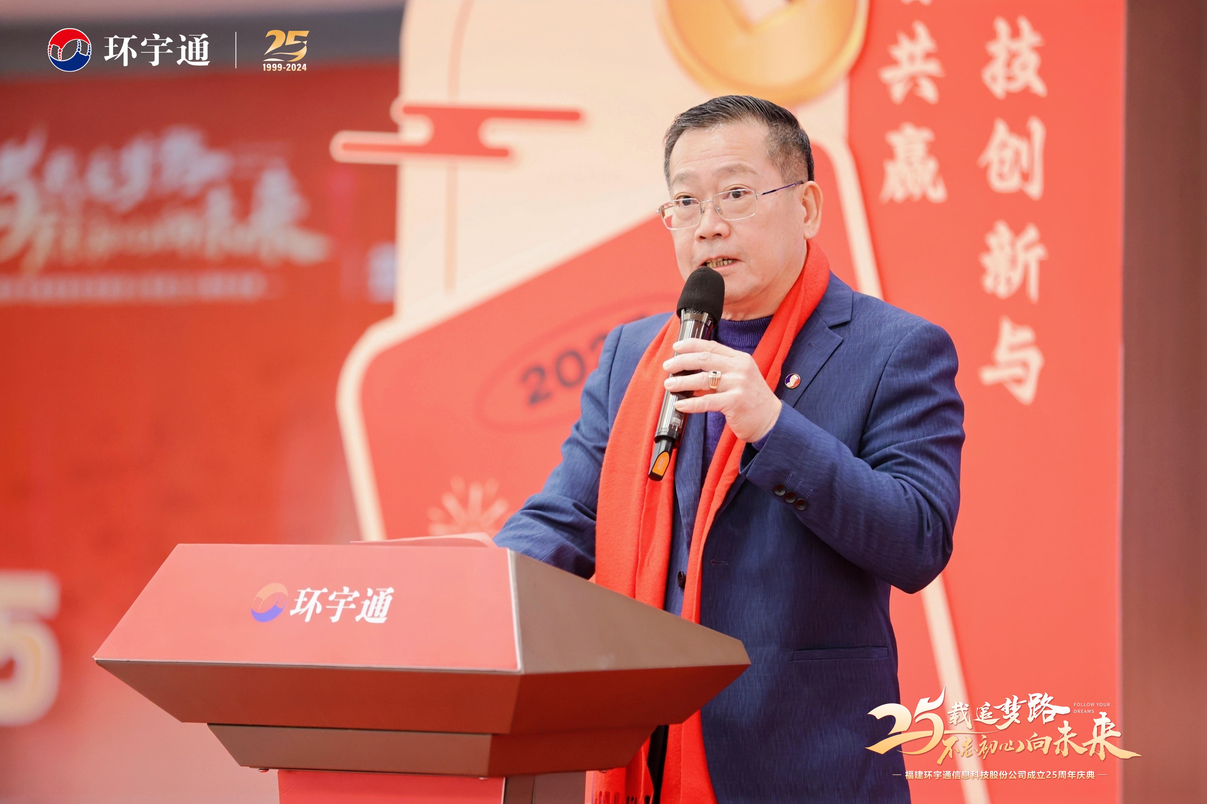 在慶典上,謝建華董事長以精彩致辭作為開場,分享了他對公司未來的展望與規劃,激勵著每一位環宇通人繼續前行。環宇通公司從一個小小的店鋪發展成為一家國內知名的信息科技公司,每一步都凝聚著公司董事長謝建華先生的智慧與汗水,每一刻都閃耀著全體環宇通人追夢不息的光芒。