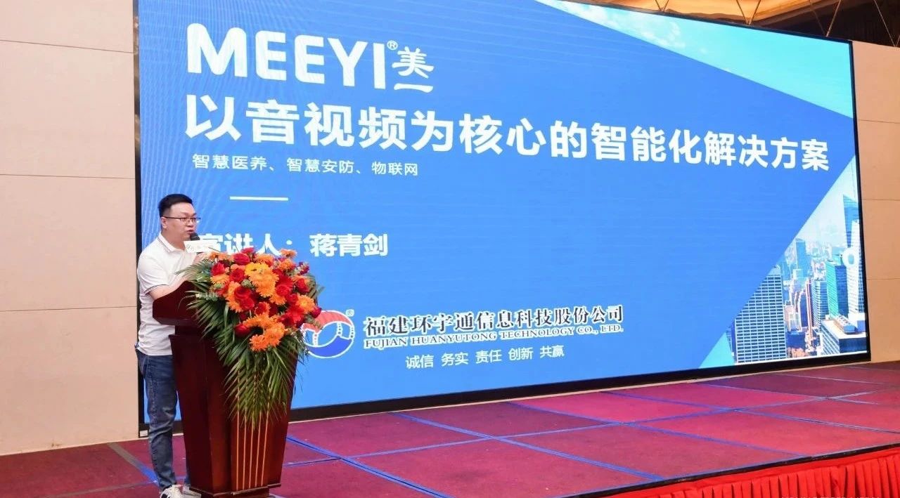 會議現場,環宇通公司安徽區域商務負責人蔣青劍做了“以音視頻為核心的智能化解